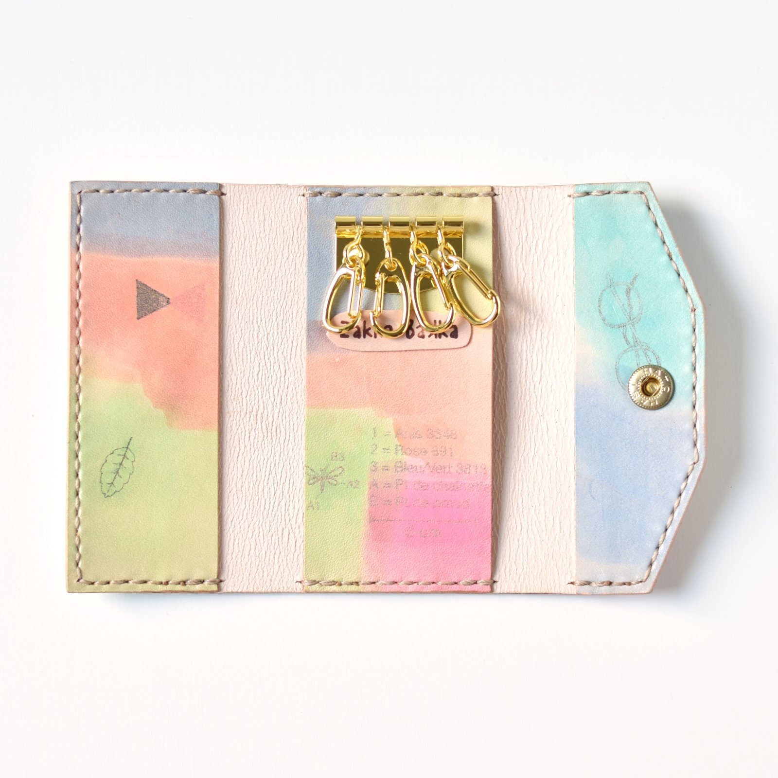 キーケースのボディをキャンバスに、様々な柄を詰め込みました。