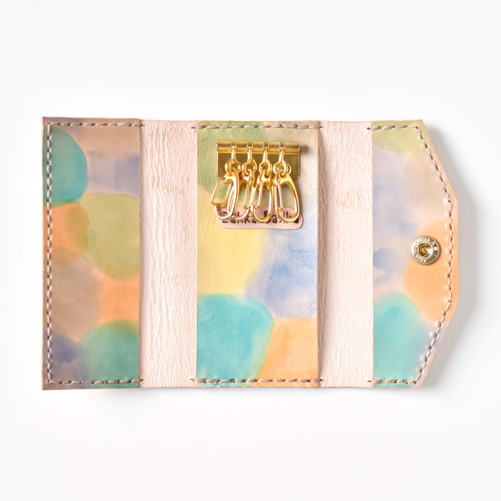 ホックで開閉するようになっている、三つ折りのキーケースです。