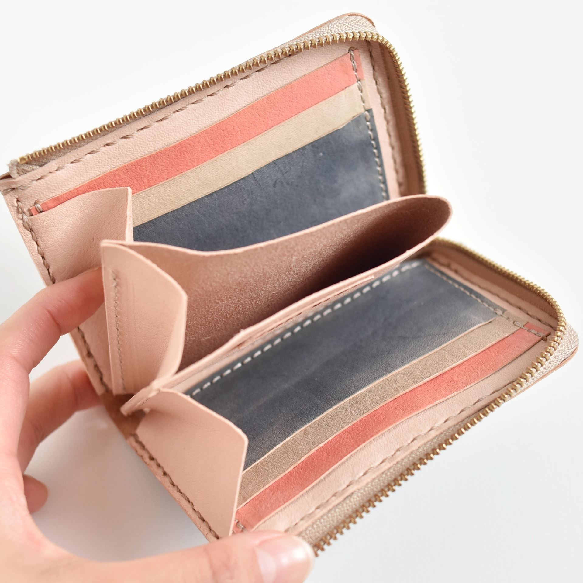 小銭入れはファスナーのない、オープンな作りにしました。