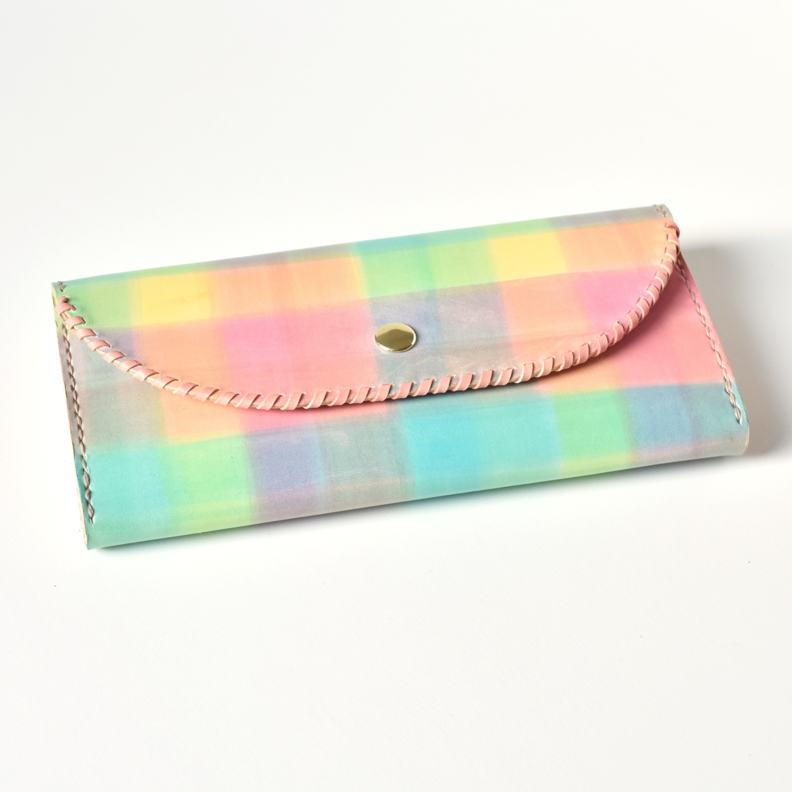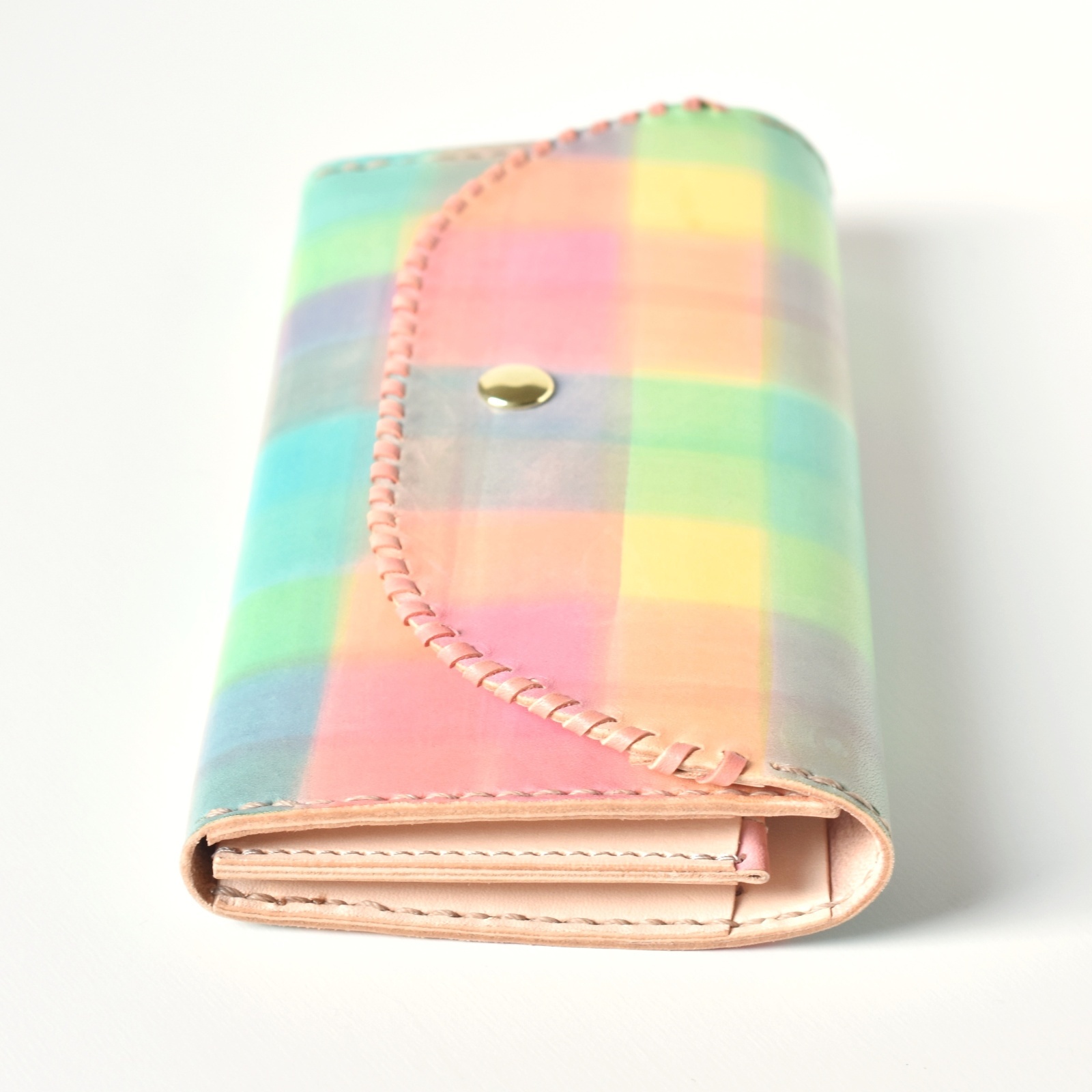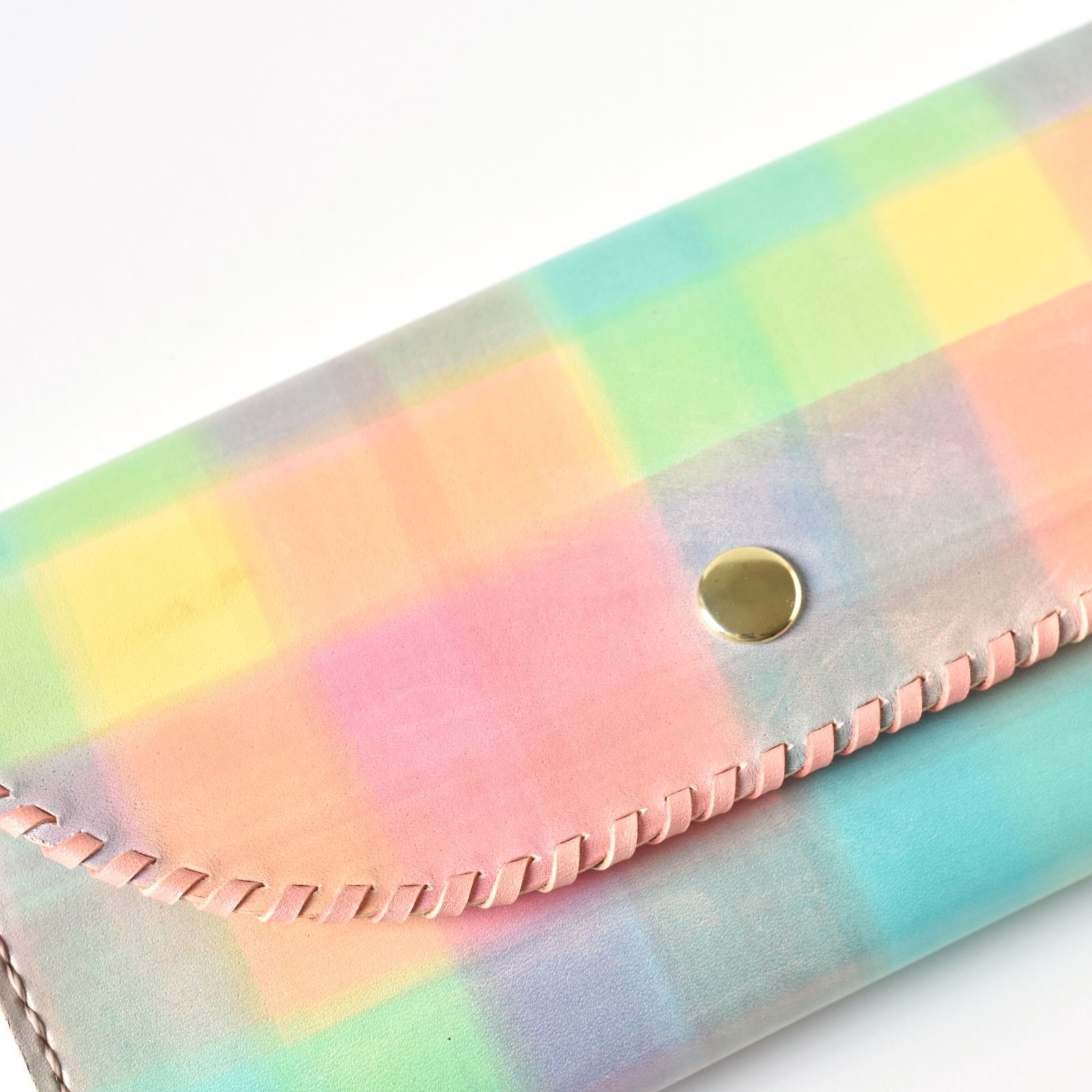 レインボーカラーで染めた、楽しいイメージのお財布です。