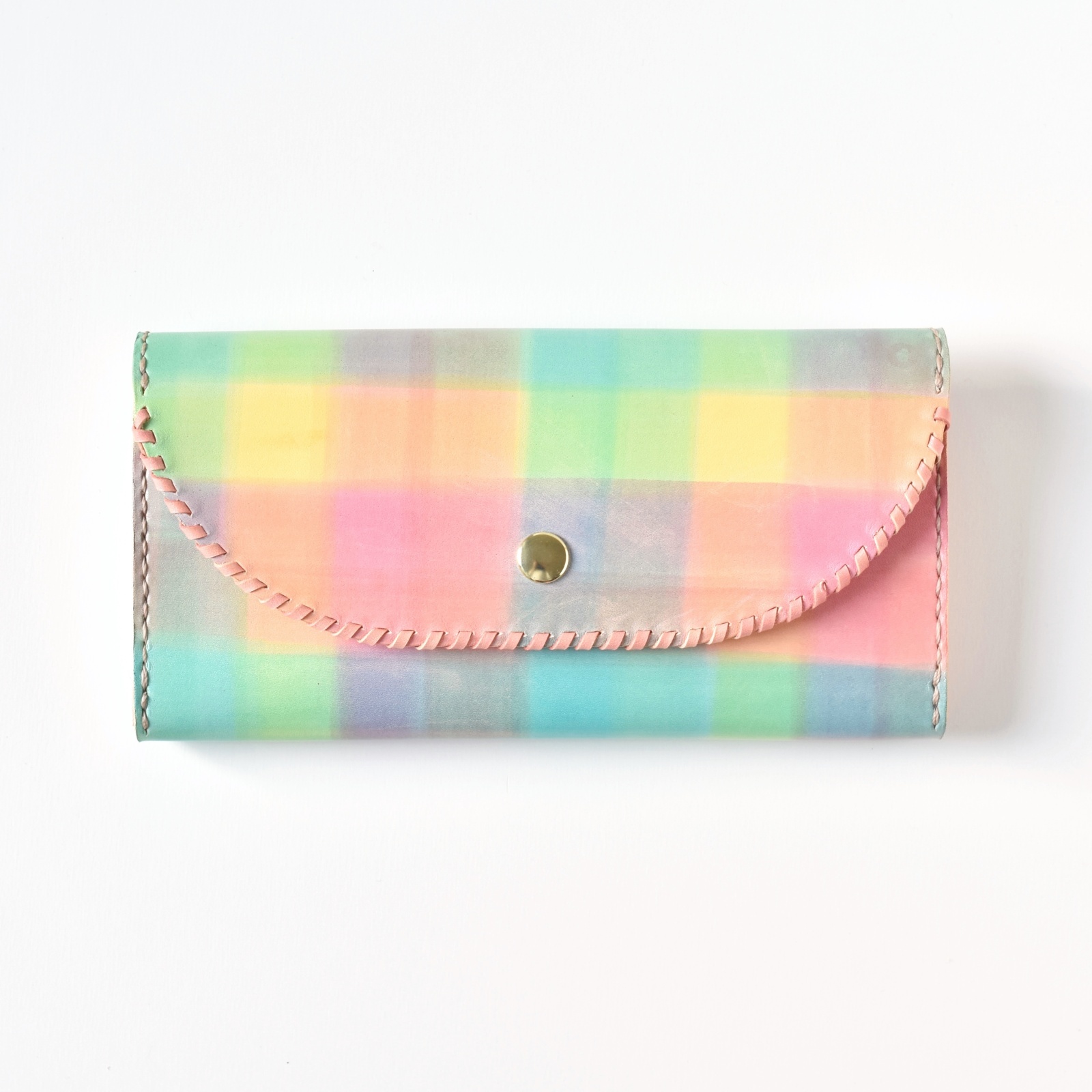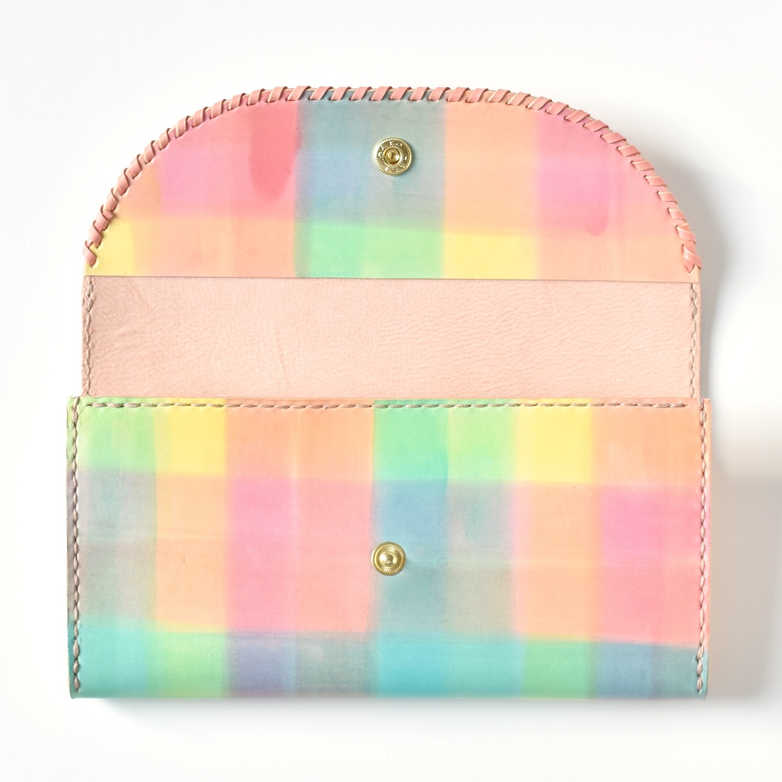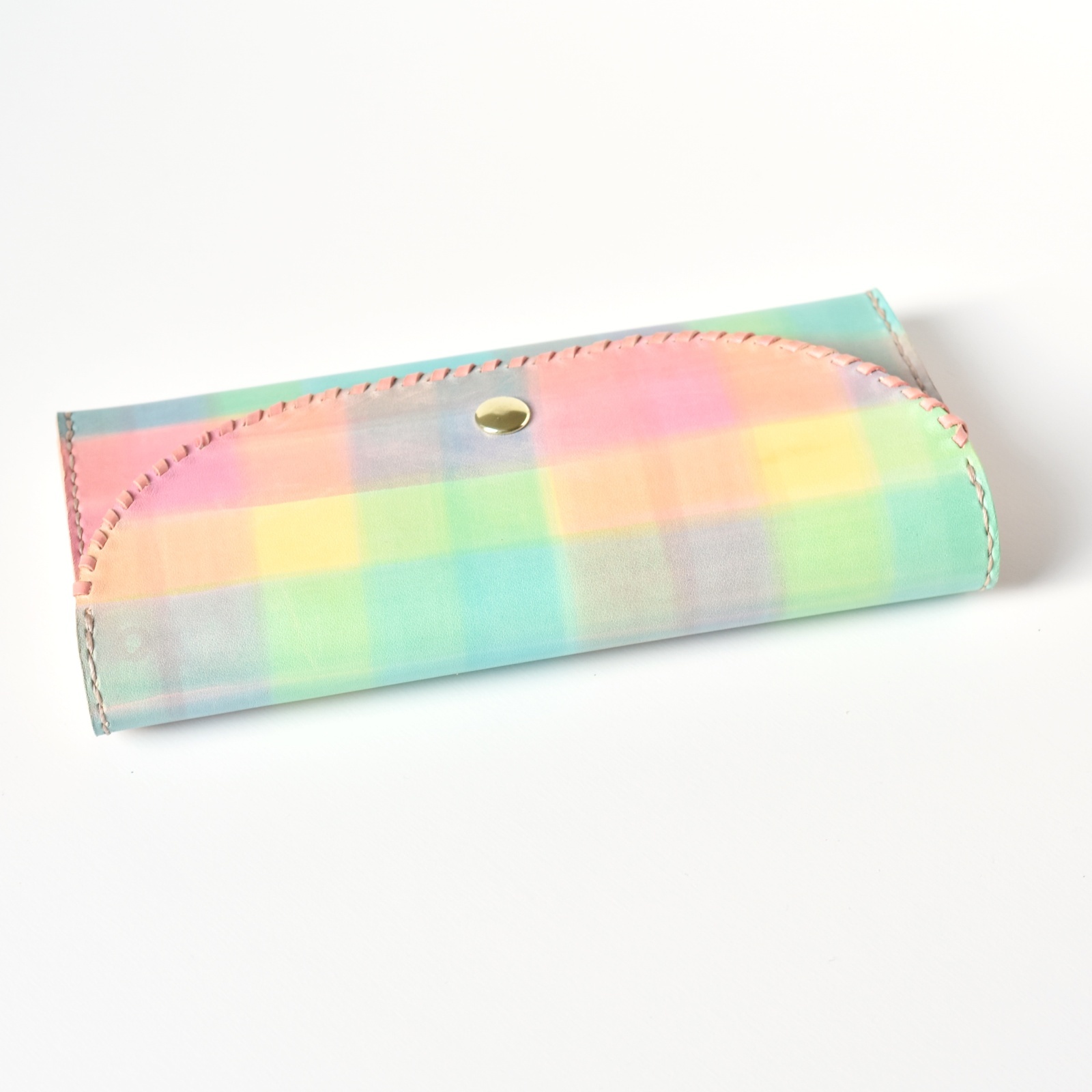 レインボーカラーで染めた、楽しいイメージのお財布です。