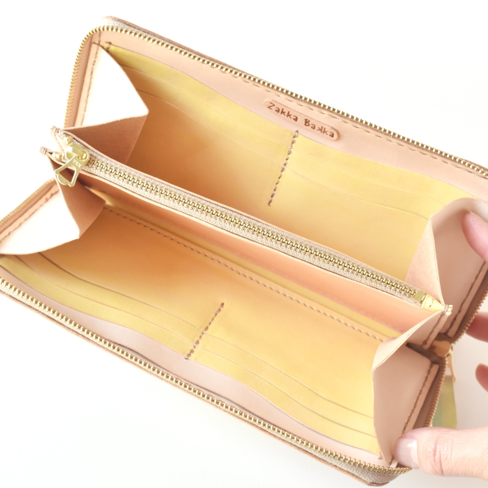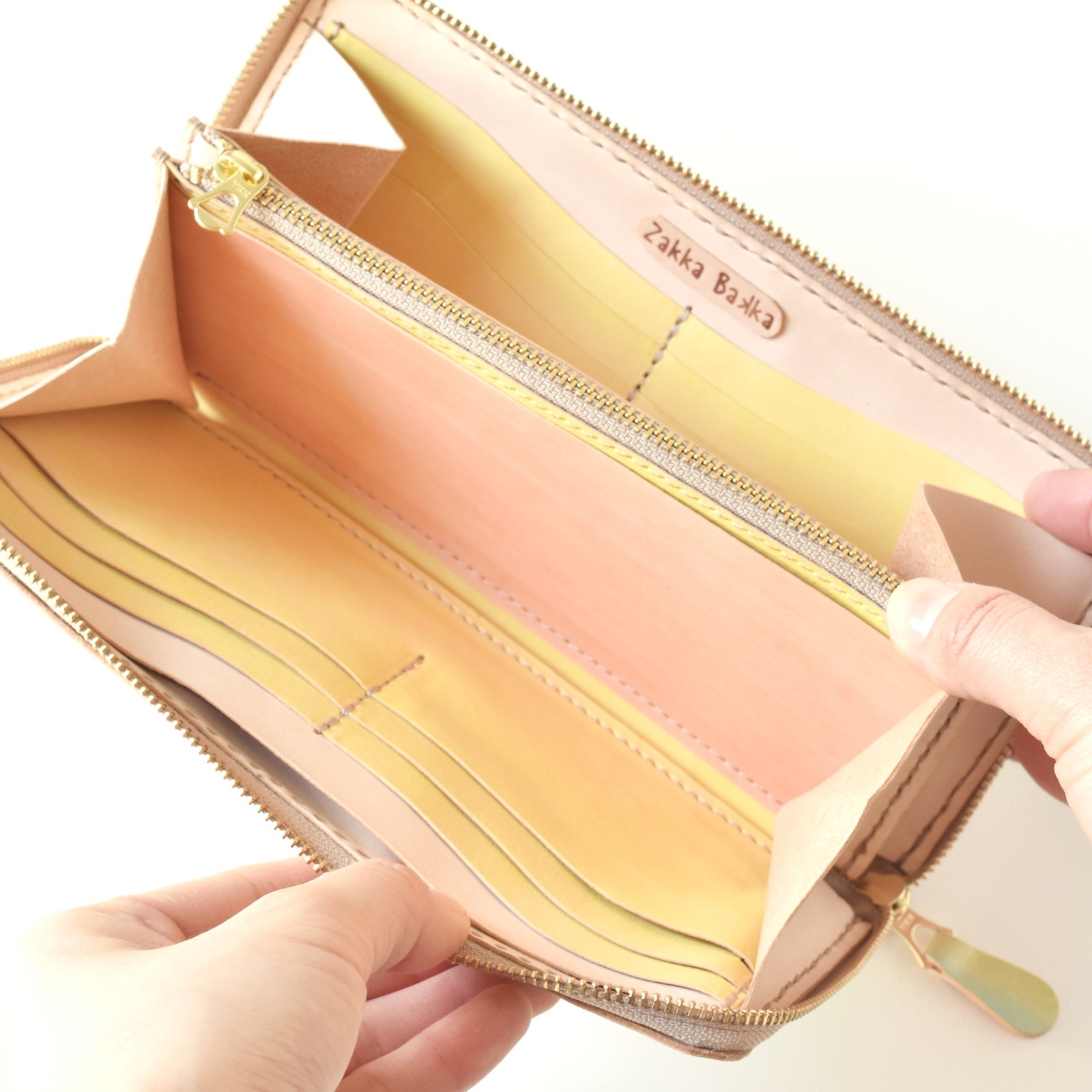 小銭入れは見やすいように、片側にマチをつけました。